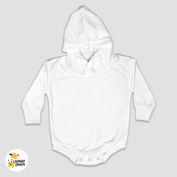 The Laughing Giraffe® Long Sleeve Baby Bubble Romper with Hoodie is the perfect blend of comfort, style, and versatility—crafted specifically for decorators, resellers, and custom apparel professionals. Made from ultra-soft 100% polyester, this blank baby romper is lightweight yet durable, making it the best blank for sublimation printing. The added hoodie brings extra warmth and fashion-forward flair, while elastic wrist and leg trims ensure a snug fit for active little ones.