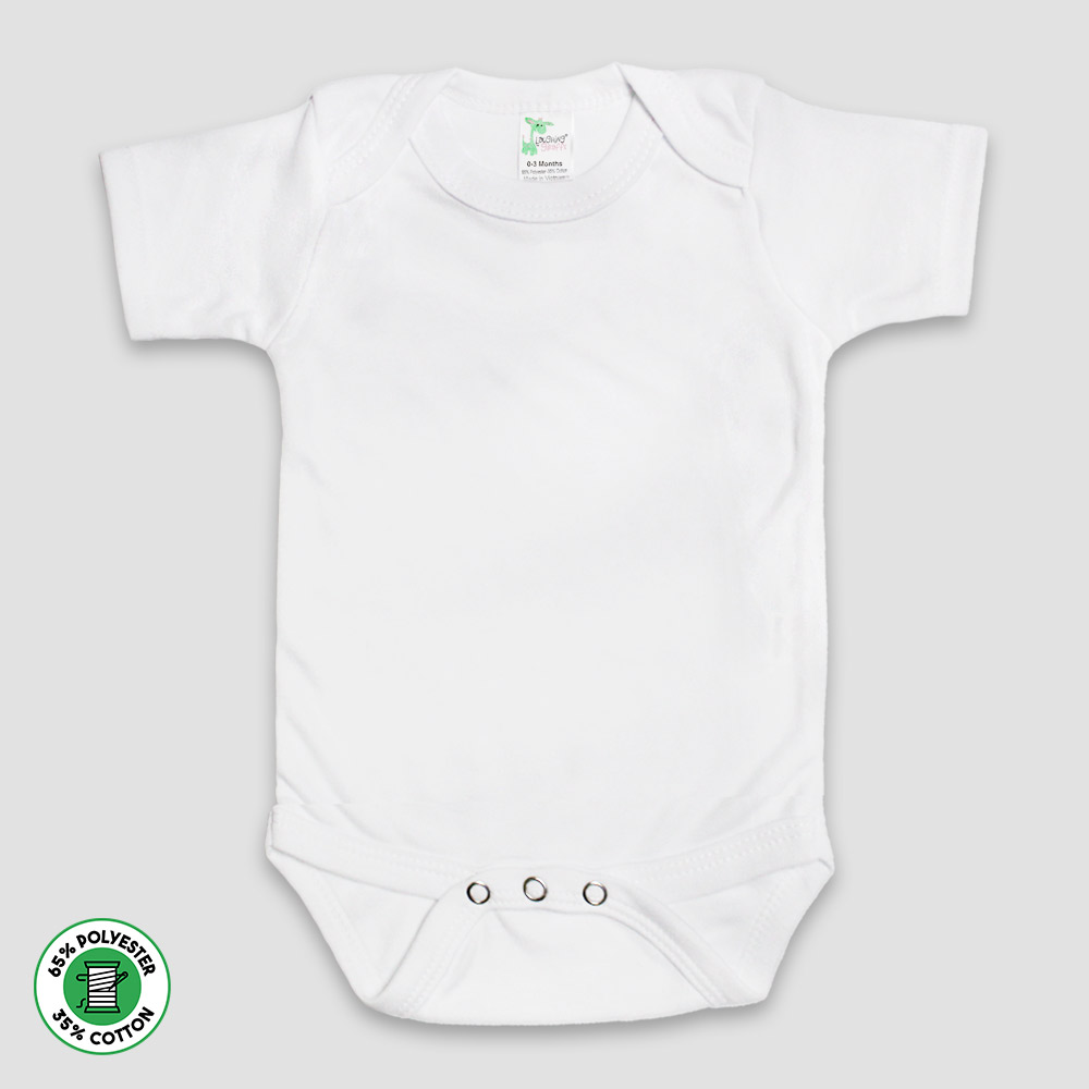 Our premium solid-colored blank baby bodysuits are the ultimate must-have for decorators, resellers, and custom apparel creators looking for quality, comfort, and print versatility. Crafted from a soft and breathable 65% polyester / 35% cotton blend, these short sleeve one-piece infant bodysuits strike the perfect balance between durability and comfort, ideal for daily wear and flawless custom printing.