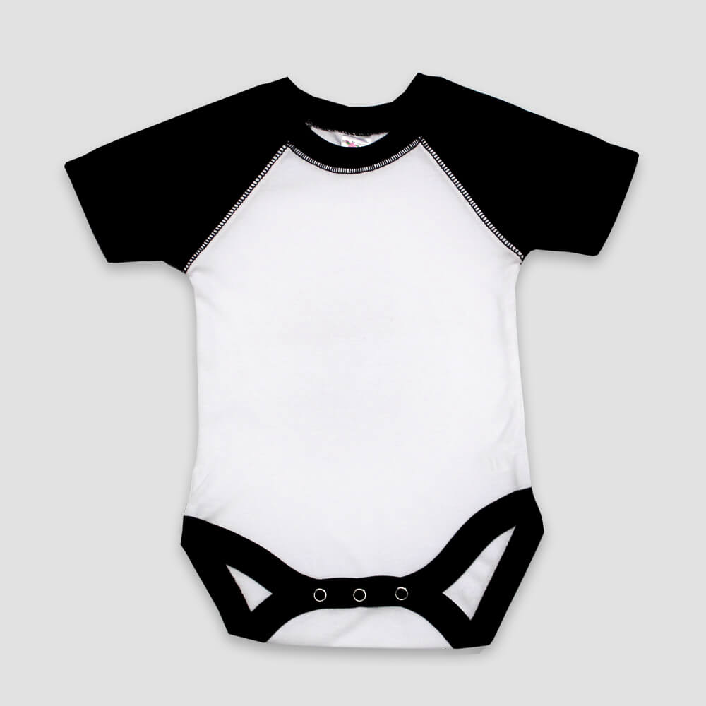 The modern raglan sleeve design features a crisp white body with contrasting black sleeves, adding a trendy touch that decorators love. Lightweight and breathable, these one-piece bodysuits are comfortable for newborns and infants, while offering a smooth surface for vibrant, full-color sublimation prints. Plus, each garment is CPSIA approved, ensuring safety and peace of mind for both resellers and parents.