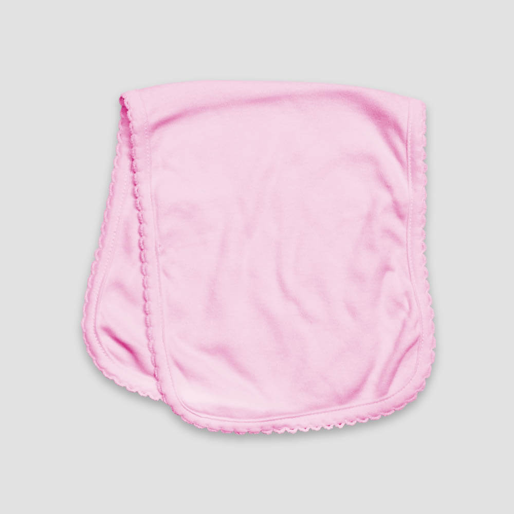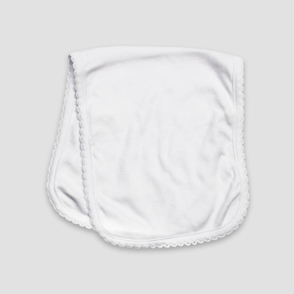 Keep your little ones clean with scallop trim burp cloths. Available in white or pink. Made from ultra-soft polyester cotton fabric with absorbent 2-ply (2 layers of fabric) and interlock knit provides a stable surface strong enough for custom printing, embroidery and monogram design. These adorable burp cloths for girls are perfect for absorbing drool or food.