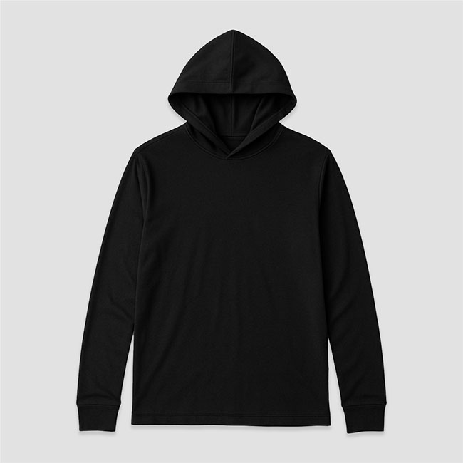 The sleek Black colorway offers a modern, timeless look that suits a wide variety of markets—from streetwear and corporate team gear to fitness apparel and promotional events. Its long sleeves and lightweight hood create a stylish yet functional silhouette, perfect for layering or wearing on its own.