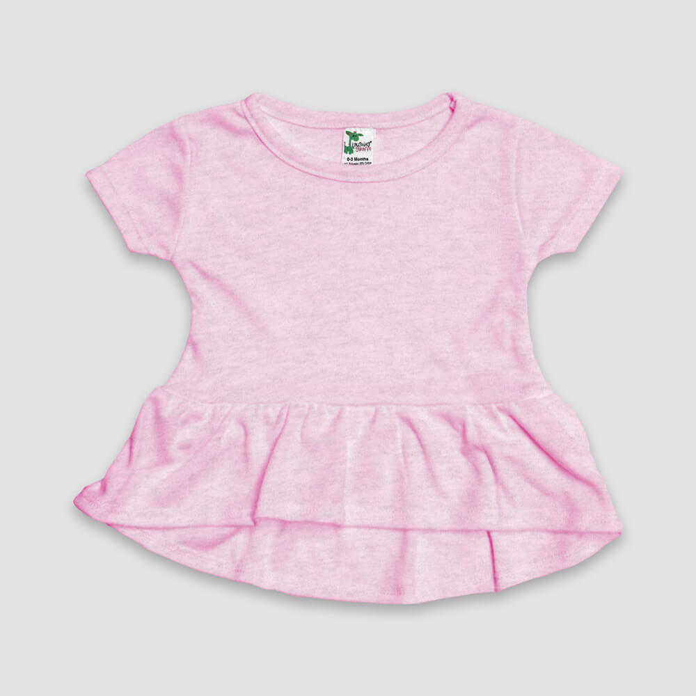 The Laughing Giraffe® Baby Girl’s Short Sleeve Peplum Top For Sublimation (produces a vintage print due to the 35% cotton blend), Screen Printing, HTV, DTG, Cricut, Embroidery, Monogramming, DIY etc.