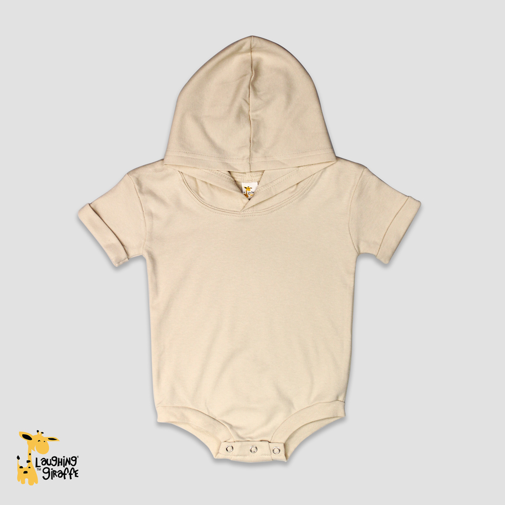 Looking for a stylish and breathable blank baby romper perfect for customization? Our Natural Rolled Short Sleeve Hooded Bubble Romper is crafted from premium 100% cotton and designed with both comfort and functionality in mind. This adorable newborn romper combines fashion-forward features like a rolled short sleeve finish and a soft hood with must-have practicality for screen printers, embroiderers, and resellers alike.
