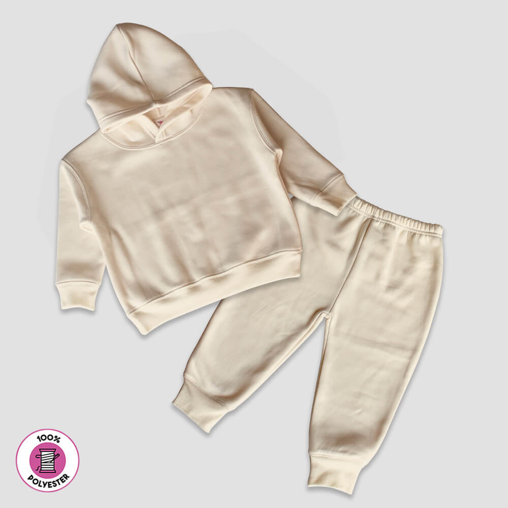 Available in classic white and natural beige, these toddler blank sweatsuits are perfect for personalized gifts, boutique resale, promotional wear, or everyday retail. The fleece lining adds softness and warmth, while the plain design offers maximum versatility for printing or embellishing.