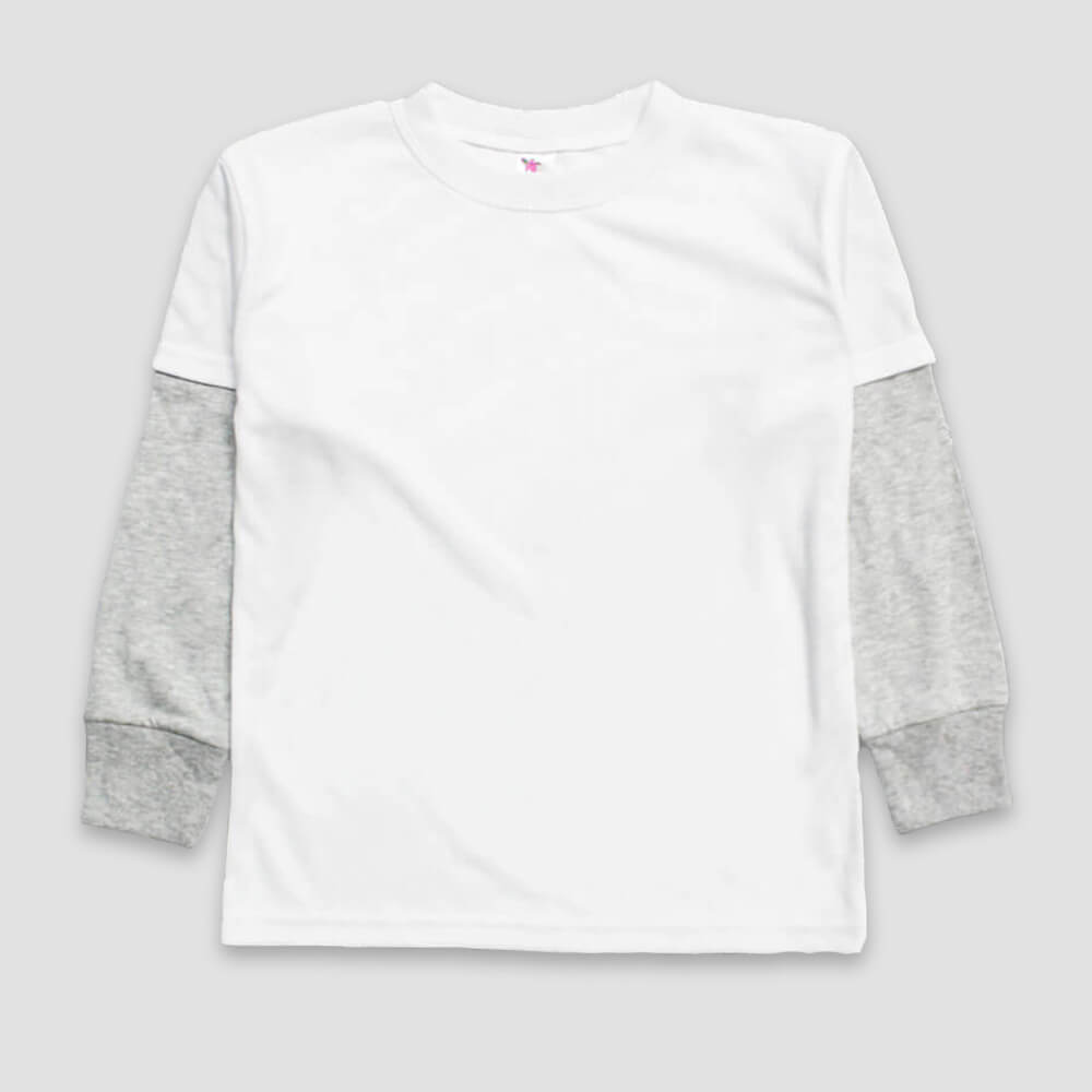 These trendy twofer long sleeves are a must-have in any kid’s wardrobe. These kid’s shirts are some of the softest garments yet durable to withstand play time. Perfect for any occasion, these can be worn as-is or personalized. Made of 100% polyester with a buttery soft feel.